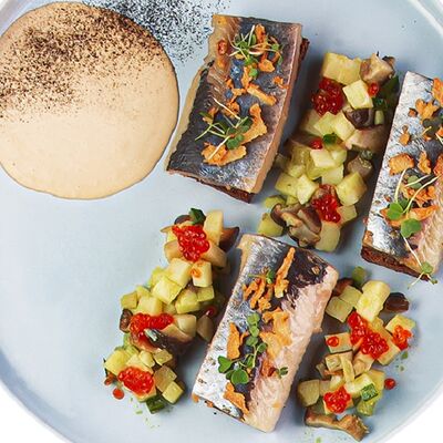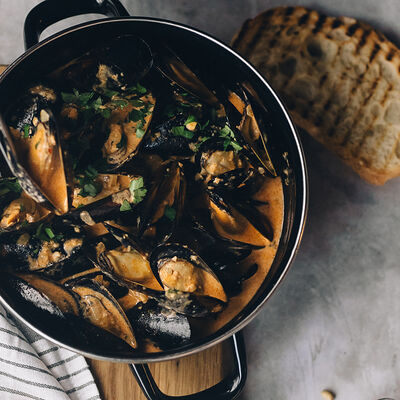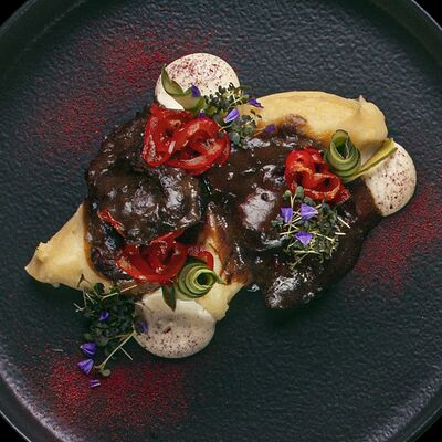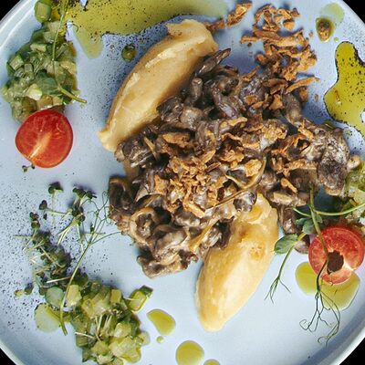 Бефстроганов из телячьей вырезки с классическим французским пюре доставка