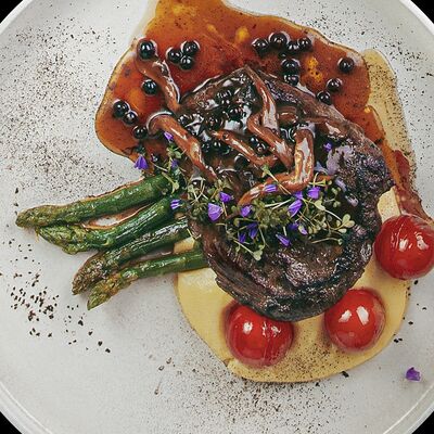 Говяжья вырезка с картофельным пюре и сливочным соусом