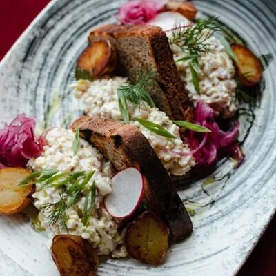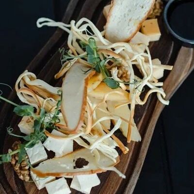 Пармезан, маасдам, брынза, чечил, гренки из белого хлеба, грецкий орех, мёд
