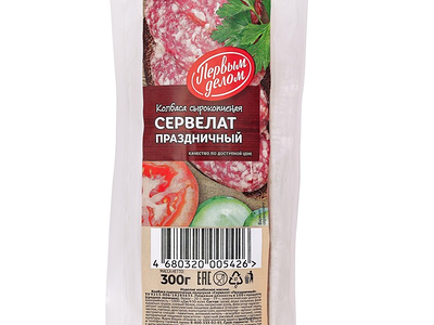 Колбаса сырокопченая Первым делом Сервелат Праздничный доставка