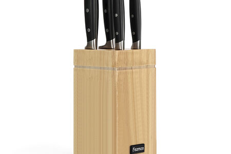 Искусство кулинарии требует особого отношения к каждому продукту и действию. Набор HAGEN от компании FISSMAN разработан с учетом этого принципа. В состав входят 5 ножей различного назначения: • Поварской нож - им можно нарезать филе, нашинковать овощи, разделать мясо. Им также легко давить чеснок и другие специи, отбивать заготовки для стейков или разбивать панцирь крабов. • Хлебный нож - подходит для нарезки любых видов хлеба, кексов, тортов и т.д. Острый клинок можно использовать и для фруктов с жесткой кожурой: арбуза, ананаса или дыни. • Гастрономический нож – выбор знатоков. Он подойдет для нарезки любых продуктов на идеально тонкие кусочки благодаря длинному и узкому лезвию. Он пригодится и для приготовления блюд японской кухни – суши и сашими. • Универсальный нож - применяют для всех типов продуктов: рыбы, мяса, овощей и т.д. Варианты использования – нарезка, слайсирование, рубка, шинкование, измельчение и прочее. • Овощной. Им легко нарезать любые овощи, фрукты, корнеплоды, избавлять от кожуры.