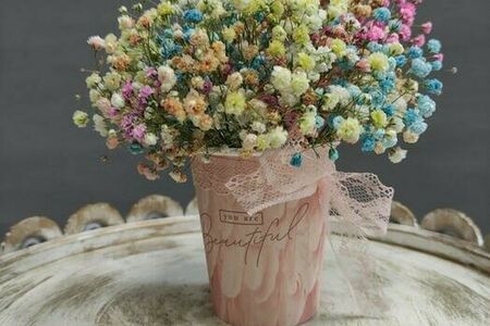 цвет стаканчика и гипсофилы может отличаться от фото Указаны примерные размеры, чтобы вы могли представить внешний вид и масштаб, но фактически размеры могут немного отличаться.