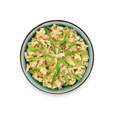 Рис, нори, курица, чесночный соус, панировочные сухари