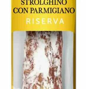 Мясной продукт. Изделие колбасное сыровяленое полусухое колбаса "strolghino con parmigiano" ("строльгино с сыром пармезан") упаковка 110 г. Свиная романская колбаска с сыром пармезан. Очаровывает легким ароматом смеси черного и белого перца и несравненным вкусом сыра пармезан, приятной полутвердой консистенцией. Созревает не менее 25 суток. По желанию можно оставить оболочку с белой плесенью, ее грибной аромат со сливочным оттенком прекрасно сочетается со вкусом сыра. Тост из свежего хлеба с ломтиками строльгино с сыром пармезан придаст вашему утру особый утонченный вкус, а вечером станет оригинальной закуской к бокалу вина.