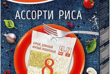 Ассорти риса Просто бурый, длинный, круглый, пропаренный, 8 пакетиков доставка