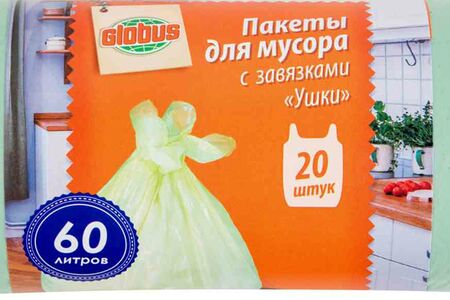 Пакеты для мусора Глобус с завязками Ушки 60 литров, 20 шт. доставка