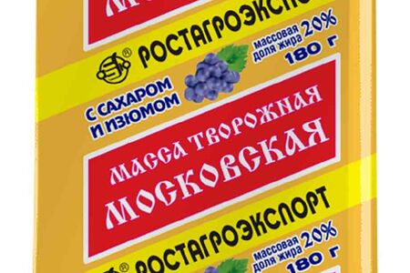 Творожная масса Московская Ростагроэкспорт с сахаром и изюмом 20% доставка