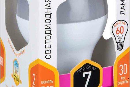Лампа светодиодная энергосберегающая Эра E27 2700К теплый свет, груша A55, 7 Вт доставка