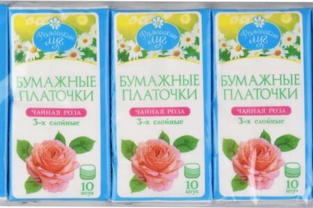 Платочки бумажные Ромашкин луг Чайная роза 3 слоя, 10 уп. × 10 шт. доставка