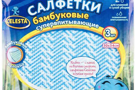 Салфетки бамбуковые Celesta супервпитывающие 30х34 см, 3 шт. доставка