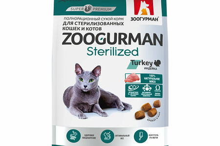 Зоогурман Sterilized сухой корм для стерилизованных кошек и кастрированных котов Индейка доставка
