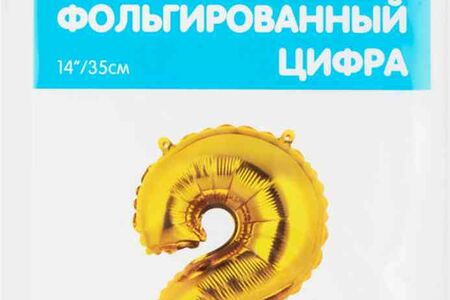 Шар фольгированный Весёлая затея цифра 2 цвет: золотой, 35 см доставка
