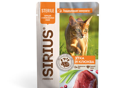 Sirius Sterile пауч для стерилизованных кошек (кусочки в соусе) Утка и клюква, 85 г. доставка