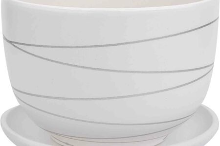 Горшок керамический с подставкой цвет: белый, серебристая полоска доставка