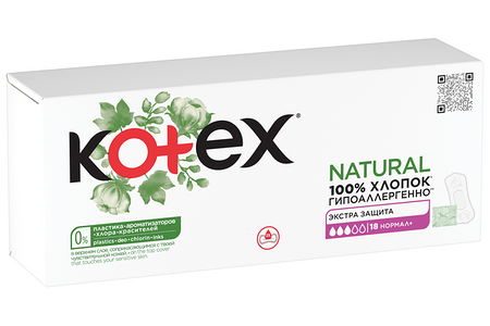 Прокладки ежедневные Kotex Natural Экстра защита, 18 шт. доставка