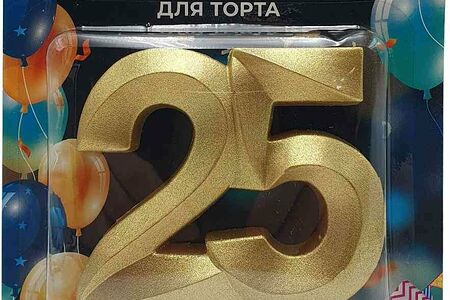 Свеча для торта фигурная Грань - Цифры 25 цвет: золотой металлик, 6,5 см доставка