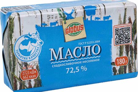 Масло сливочное Глобус сладкосливочное несоленое 72,5% доставка