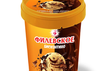 Мороженое пломбир Айсберри Филёвское Бисконтино с ароматом Бисквита с кусочками шоколадного печенья с шоколадным топпингом доставка