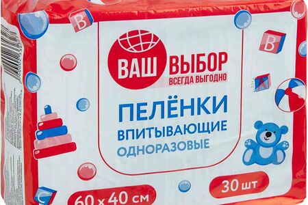 Пеленки детские впитывающие Ваш выбор одноразовые 60×40 см, 30 шт. доставка