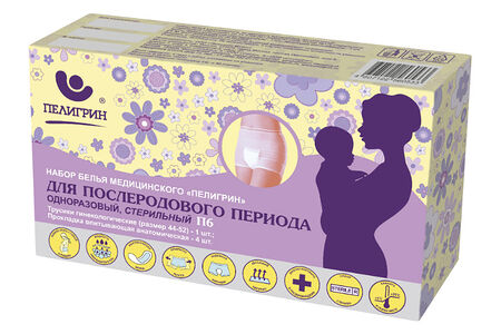 Пелигрин П6 комплект белья стерильные послеродовые трусики 1 шт+прокладки 4 шт доставка