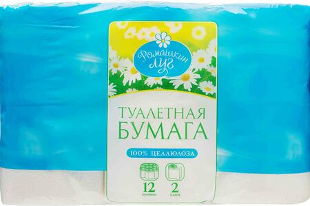 Туалетная бумага Ромашкин луг белая 2 слоя, 12 рулонов доставка