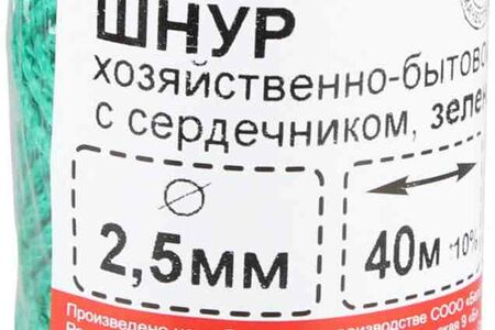Шнур хозяйственно-бытовой Стройбат с сердечником зеленый, 2,5 мм х 40 м доставка