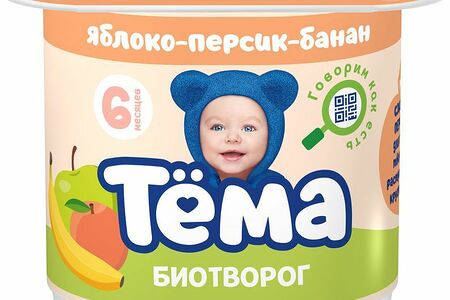 Биотворог Тёма с яблоком, персиком и бананом с 6 месяцев 4,2% доставка
