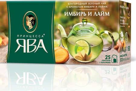 Чай зеленый Принцесса Ява с имбирём и лаймом в пакетиках, 25 шт. доставка
