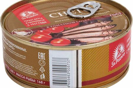 Сведения о составе: Снеток, паста томатная, сахар, масло подсолнечное, мука пшеничная, соль, лук, регулятор кислотности - кислота уксусная, перец душистый, перец черный, гвоздика, кориандр, лавровый лист.Пищевая ценность: 152 ккалПроизводитель: Ооо "Рыбзавод "За Родину", Россия