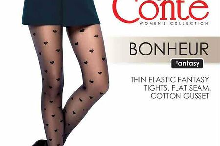 Тонкие фантазийные колготки с рисунком "сердечки" bonheur – идеальное дополнение к романтичному образу современной девушки. Колготки эластичные, легкие, безупречно облегающие фигуру, поэтому вам будет комфортно носить bonheur на протяжении всего дня. · удобный пояс; · плоский шов; · хлопковая ластовица.