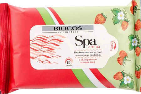 Влажные салфетки очищающие Biocos Spa aroma с экстрактом лесных ягод, 15 шт. доставка