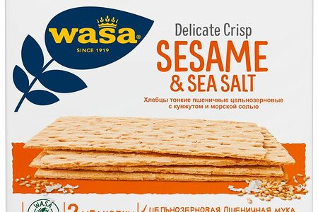Хлебцы Wasa Delicate Crisp Sesame & Sea salt тонкие пшеничные с кунжутом и морской солью доставка