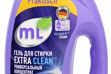 Универсальный гель-концентрат для стирки цветного и белого белья ml extra clean, 1,3 л., разработанный под контролем немецкой фабрики бытовой химии gruenlab, подходит для стирки вещей в воде любой жесткости и температуры от 30 до 60с. Гель эффективно отстирывает загрязнения как в холодной, так и горячей воде, а также используется для стирки как в стиральной машине автомат, так и для ручной стирки. Гель для стирки ml extra clean заметно устраняет пятна, обладает антистатическим эффектом, заметно разглаживает ткань после стирки, а также бережно относится к цвету ткани. Благодаря формуле-концентрату стирка средством ml до 4,5 раз более экономична (по сравнению с другими средствами для стирки в линейке gradient). Средства объема 1,3 л хватает до 65 стирок. Жидкое средство для стирки эффективно для стирки черного белья, темного, белого и цветного белья, для стирки повседневной одежды из хлопка, полиэстера, а также для стирки тканей, требующих особого ухода - для стирки пуховиков, спортивной, детской и зимней одежды, тканей из мембраны и нижнего белья жидкий стиральный порошок ml extra clean универсальный обладает приятным свежим ароматом, который устраняет неприятный запах. Средства для стирки линейки ml не только эффективны, но и экологичны благодаря бережному составу без хлора, парабенов, агрессивных павов, бутылке, пригодной к переработке, биоразлагаемым компонентам в составе. Попробуйте инновационную формулу универсального геля для стирки ml extra clean для эффективной, бережной, экономичной стирки ваших любимых вещей.