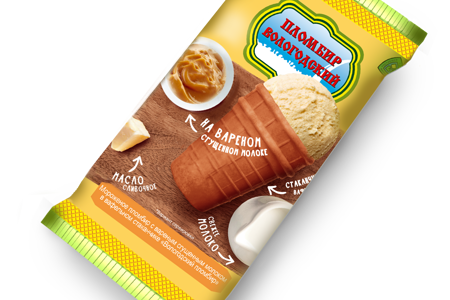 Мороженое пломбир Пломбир Вологодский на варёном сгущённом молоке в вафельном стаканчике 15% доставка