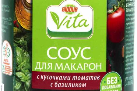 Соус для макарон Глобус Вита с кусочками томатов, базиликом, без сахара доставка