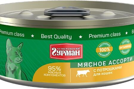 Консервы для кошек Четвероногий гурман "Мясное ассорти" Потрошки доставка