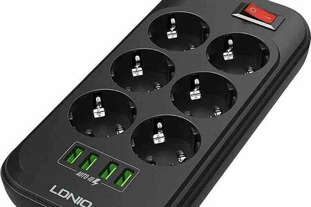 Сетевой удлинитель с функцией умной зарядки ldnio se6403 на 6 розеток и 4 usb порта с защитой от перегрузки, короткого замыкания и перегрева. Максимальная мощность подключаемых устройств – 2500 вт. Удлинитель имеет провод длиной 4 метра, встроенную варисторную защиту от высоковольтных импульсов в сети, единый выключатель, что позволяет удобно регулировать подключенные устройства. Этот умный тройник с 6 электрическими розетками позволяет подключать не только компьютер и ноутбук, но также и другую технику и аксессуары. Все розетки оснащены специальными защитными шторками от детей – вы можете быть уверены, что никакие посторонние предметы не коснутся контакта под напряжением. 4 usb разъема обеспечивают зарядку электронных гаджетов таких, как телефоны, планшеты, наушники и многие другие. Уникальная технология auto-id для usb портов автоматически определяет подключенное устройство и заряжает его максимальным током. В отличие от многих других сетевых фильтров, предлагаемых на рынке, продукция ldnio изготавливается из специального негорючего пластика, который сохраняет пожаробезопасность до температуры 750 градусов с. Выключатель устройства помогает экономить электроэнергию, а противоскользящие ножки обеспечивают надежность и безопасность при использовании. Благодаря элегантному дизайну и компактным размерам, он легко помещается в любом месте дома и можно использовать как в стационарном положении, так и в путешествиях или командировках.