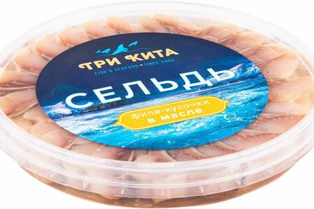 Сельдь тихоокеанская соленая Три кита филе-кусочки в масле доставка