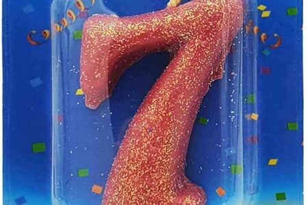 Свеча Овал цифра: 7 розовый блеск доставка