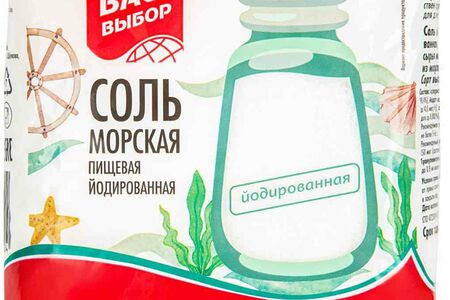 Соль морская пищевая Ваш выбор мелкая помол №0 йодированная доставка
