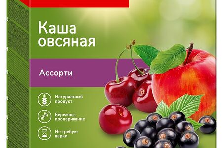 Каша Ясно солнышко Овсяная ассорти №15 черная смородина вишня и яблоко 6х45 г доставка