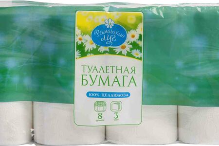 Туалетная бумага Ромашкин луг с перфорацией и тиснением 3 слоя, 8 рулонов доставка