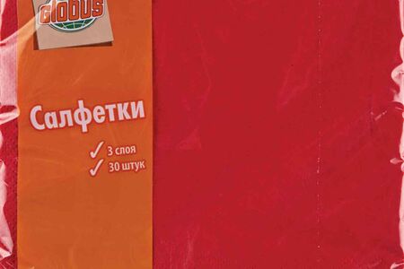 Салфетки бумажные Глобус красные 3 слоя, 30 шт. доставка