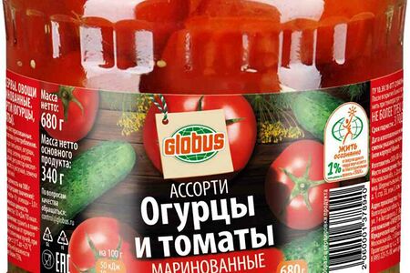 Ассорти маринованное Глобус огурцы и томаты доставка