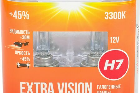 Лампа головного света галогенная для автомобиля AUTOSTANDART Extra Vision +45%, H7-12V, 55W, PX26d, 2шт доставка