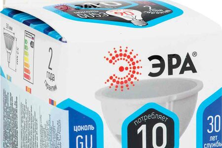 Лампа светодиодная Эра GU5.3 4000K 230 В белый свет, рефлектор MR16, 10 Вт доставка