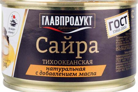 Сайра тихоокеанская натуральная Главпродукт с добавлением масла доставка