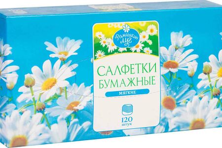 Салфетки бумажные Ромашкин луг в коробке 2 слоя, 120 шт. доставка
