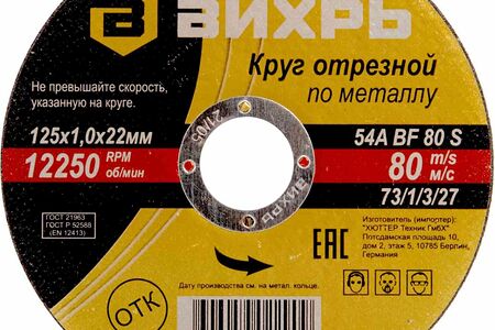 Круг отрезной по металлу Вихрь, 125×1,0×22 мм доставка