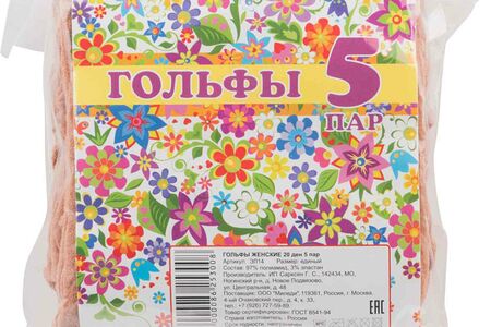 Гольфы женские цвет: бежевый, 20 den, 5 пар доставка